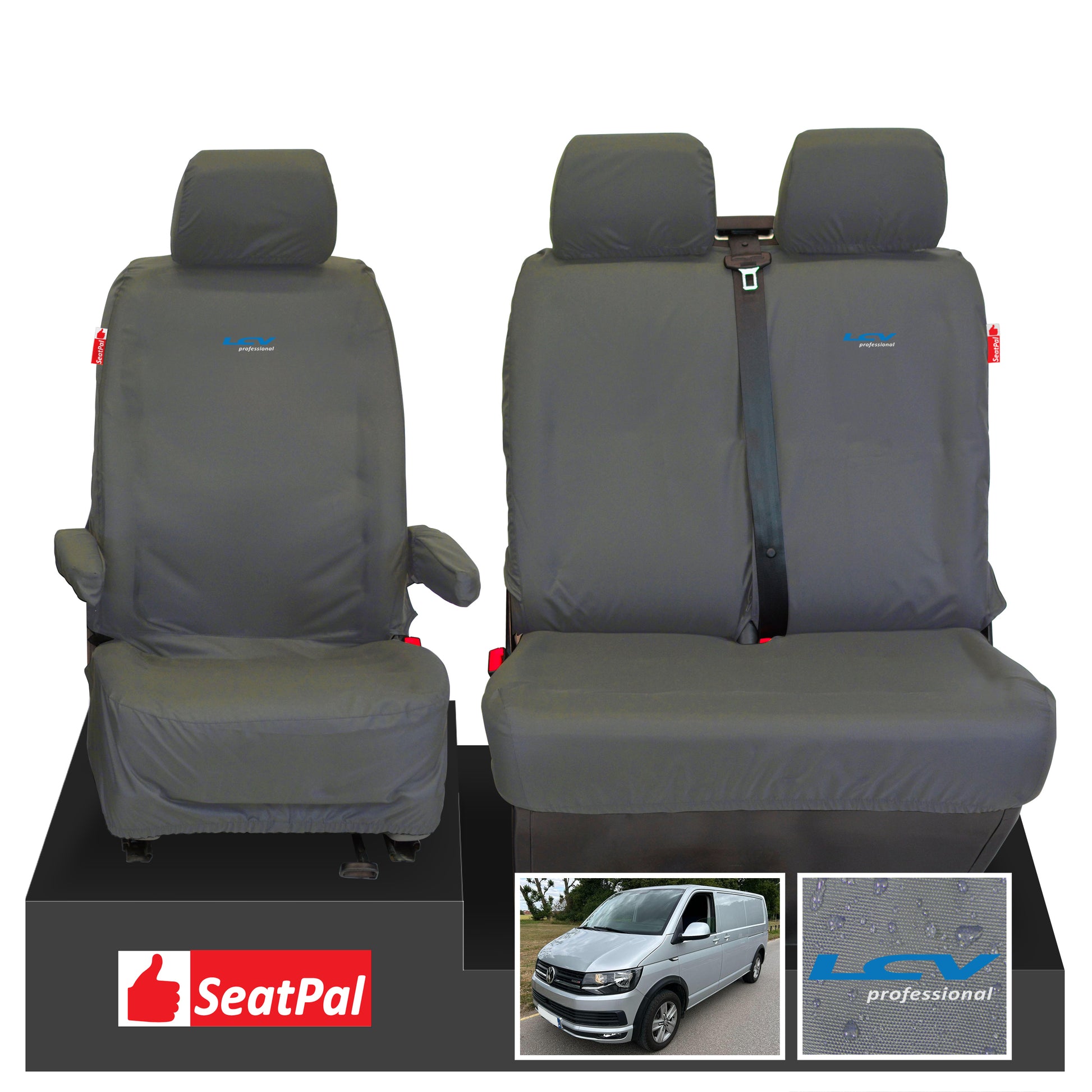 Volkswagen Transporter T6.1 & T6 Panel Van Or Kombi MY15 Onwards Front 1+2 Set Grey Tailored Waterproof Seat Covers With LCV Professional Logos